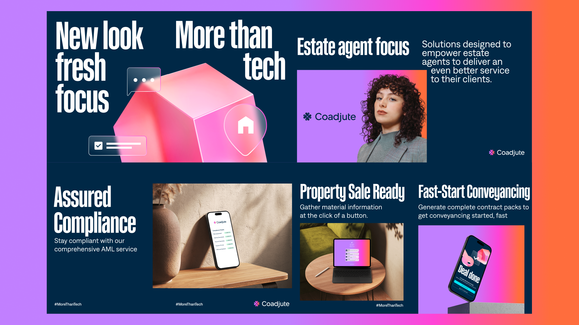 There really was. We knew we wanted the new brand to be a big departure from what we had before, otherwise what was the point? During this initial phase there was one theme that stood out for us, that of ‘Empowering Estate Agents’. Big bold use of colour and gradients, powerful fonts, photography that really championed estate agents, it wasn’t like anything else we’d seen in the industry. There was certainly a sense of trepidation about taking such a bold shift in the beginning, but as it started to develop this was when we got to really have fun with it and develop the essence of the brand and mould its personality.